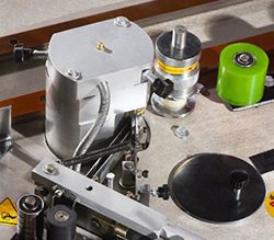 Два клеенаносящих вала обеспечивают наилучшее приклеивание кромки. Один вал наносит клей на деталь, второй вал на кромку.